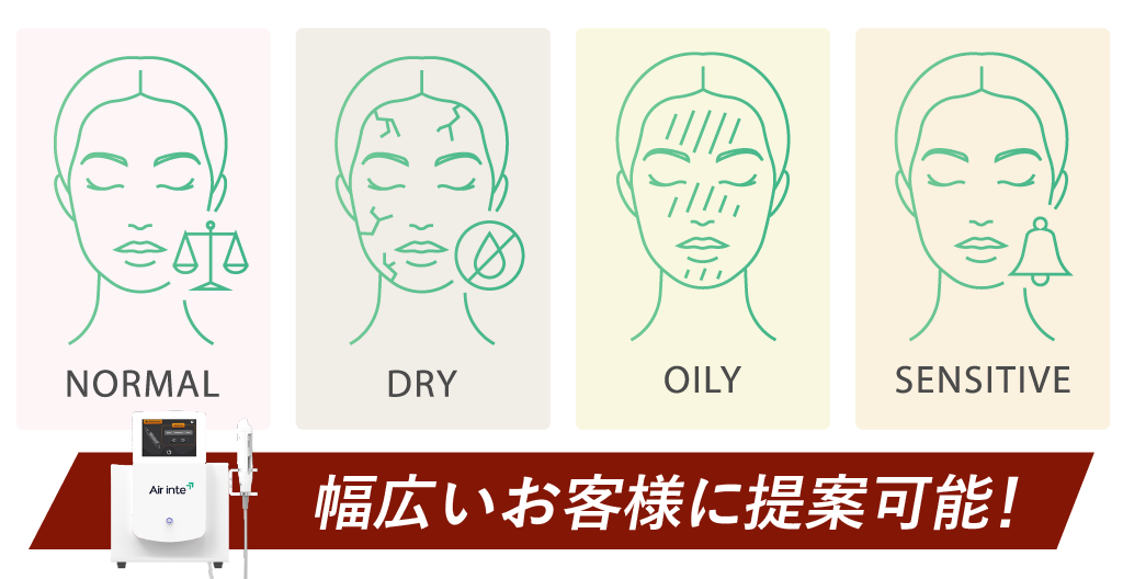 エアインテは言わば空気砲。幅広い肌質のお客様へ提案が可能です!